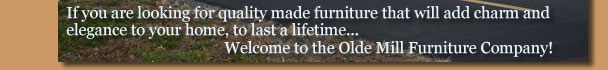 Olde Mill Furniture specializes in creating heirlooms for the future—today. Our furniture is handcrafted by fathers and sons, working side by side, keeping the art of furniture-making alive. Our selection of woods, design, and construction features along with unique styles and colors, speak volumes about our desire for individualism and quality. While visiting our Historic Mill